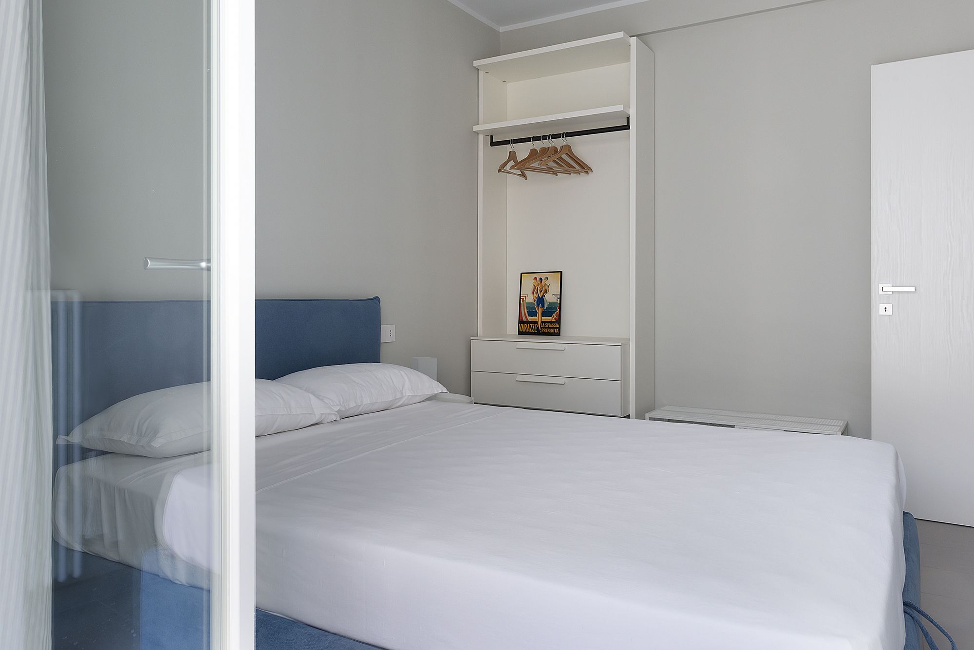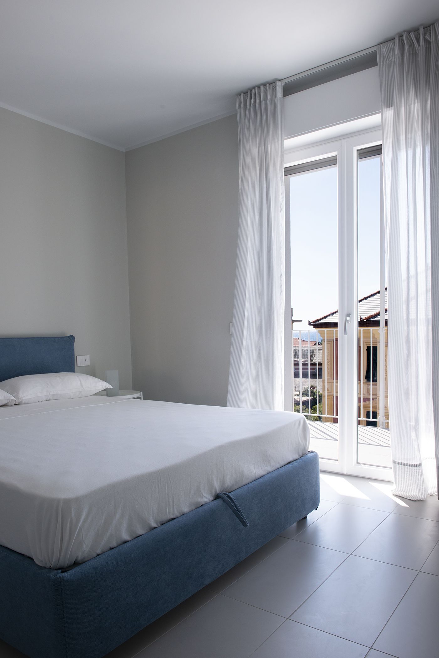 Da una camera da letto si può accedere a un balcone di 9 metri quadrati con vista mare.